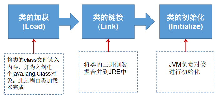 程序使用某个类时,如果该类没有加载到内存中,会通过以下三个主要步骤对类初始化: