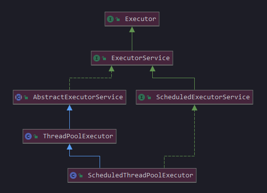 Java中的线程池主要是Executor这个接口及其子类。继承体系如下: