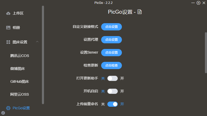 上传图片 将图片拖入上传区,上传成功后会自动在剪切板生成图片链接。