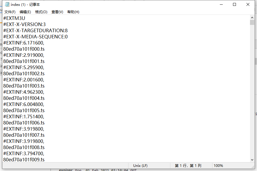 可见,第一个m3u8文件的内容,是真正的m3u8的地址。