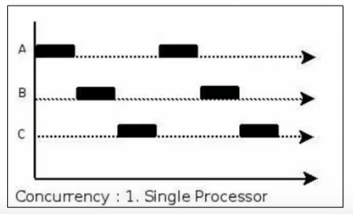 并发不是真正意义上的同时进行,只是CPU把一个时间段划分成几个时间片段(时间区间),然后在这几个时间区间之间来回切换,由于CPU处理的速度非常快,只要时间间隔处理得当,即可让用户感觉是多个应用程序同时在进行。