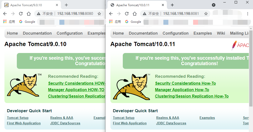 准备两台tomcat服务器,一台端口为是8080,另一台为8081。确保在Linux系统外都能够访问到这两个服务器。