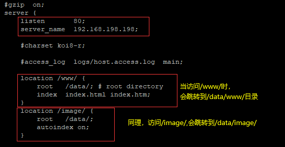 root表示根目录,以/www/为例,当访问192.168.198.198/www/a.html时,Nginx会去访问/data/www/a.html。