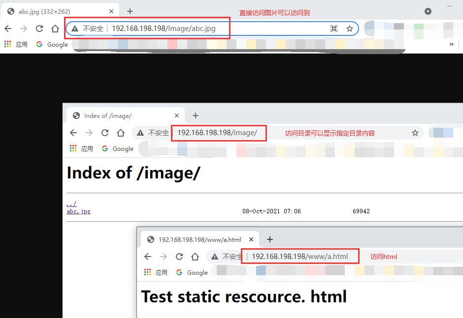 准备好a.html和一个图片,例如/data/www/a.html和/data/image/abc.jpg。